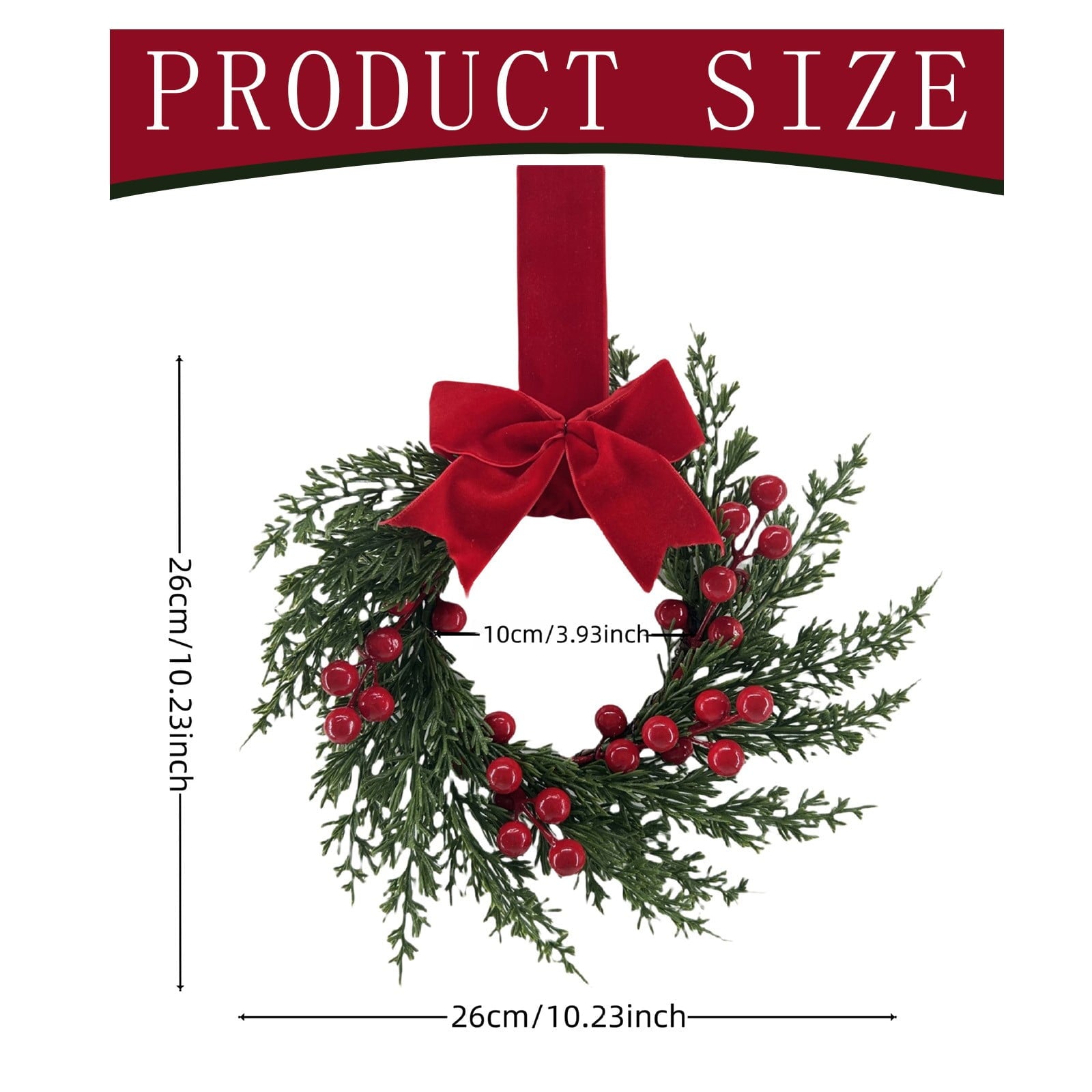 Each wreath measures approximately 10 inches, making it the ideal size for adding a touch of holiday spirit to cabinets, chairs, and other smaller spaces without being overwhelming.